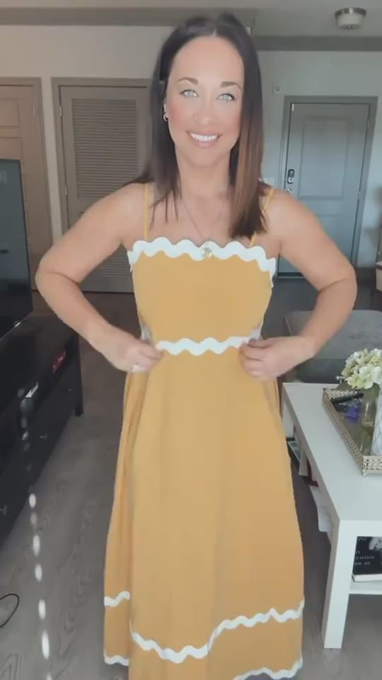 Breezy days and sunny escapes call for the Riviera Breeze Midi Dress — a timeless, carefree style that’s as effortless as it is chic. Featuring a flowy A-line silhouette, stretchy bandeau-style top, and contrast ruffle trim for that playful pop, it’s perfect for beach strolls, brunch, or summer soirées.